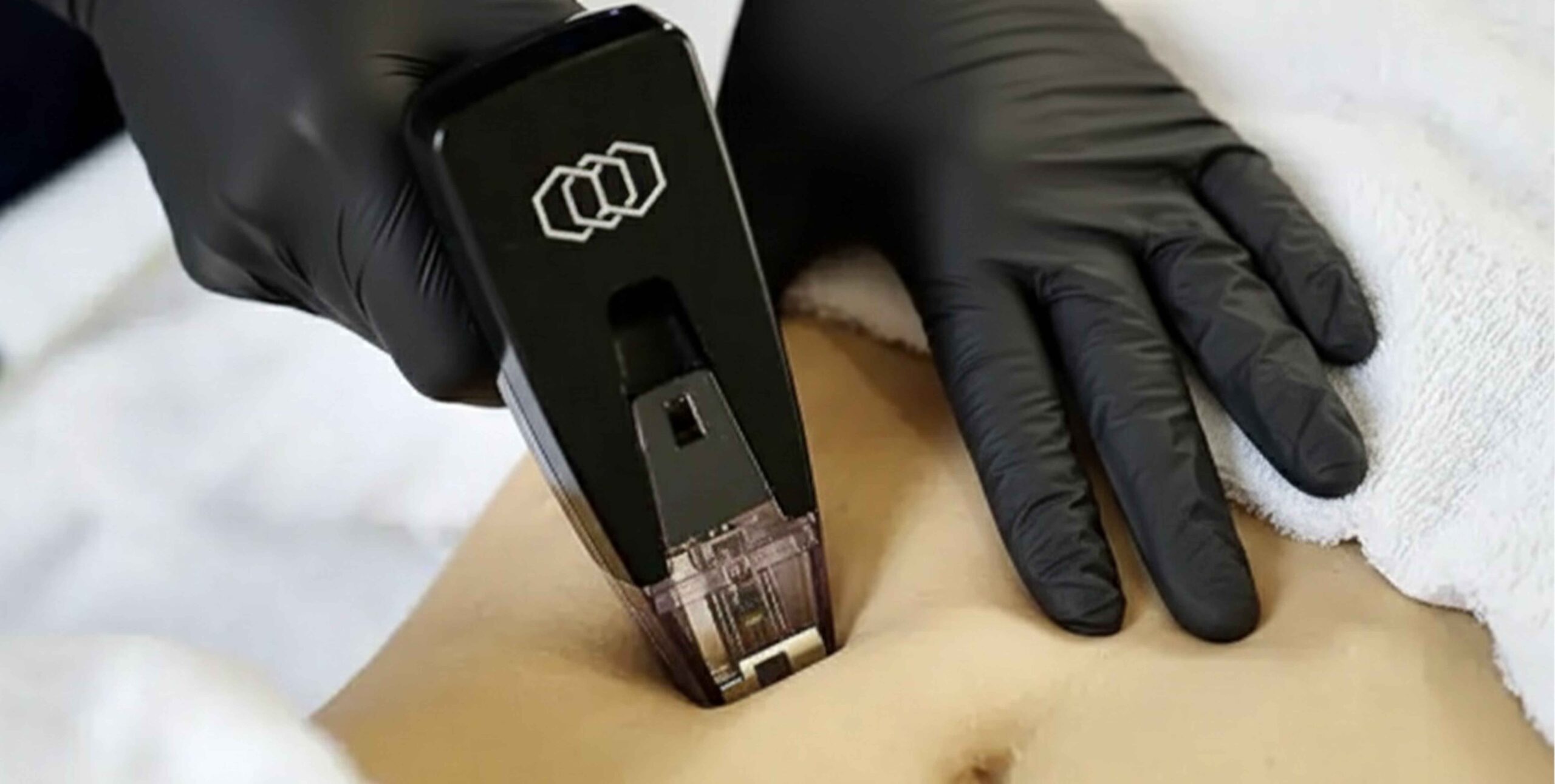 During the treatment, the Morpheus8 device delivers controlled RF energy through ultrafine needles, creating micro-injuries that trigger collagen remodeling and tissue tightening.